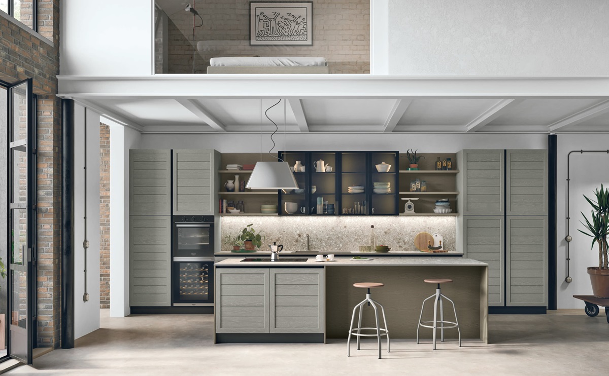 Ti consigliamo poi di posizionare le colonne forno e frigorifero in angoli o pareti che non limitino il passaggio della luce naturale. Meglio ancora se inserite in apposite nicchie in cartongesso che donano eleganza e ricercatezza di dare un senso di pesantezza all’ambiente. Allo stesso tempo non temere di utilizzare qualche spazio aperto tra i tuoi elementi cucina: mensole, ripiani e nicchie ti consentono di riporre a vista tutto ciò di cui hai bisogno quotidianamente e di alleggerire la composizione donando un piacevole movimento visivo.